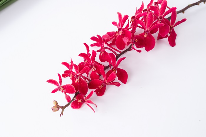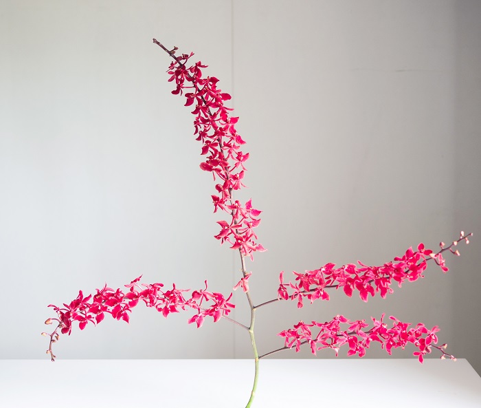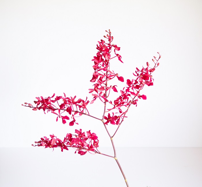 居家使用技巧:腎藥蘭分岔多、花莖硬挺,除非是很大型的作品,否則整支使用會過於龐大,居家使用時可分段裁剪,如裁剪後插腳不夠長, 下方已經盛開的花朵可以摘除部分,盡量保留上方的花苞。