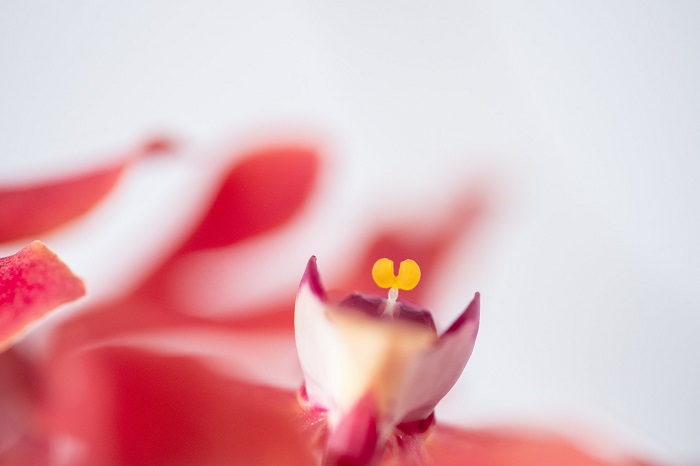 腎藥蘭屬的屬名「Renanthera」是由拉丁文renes(腎臟)與希臘文anthera(花藥)組合而成, 也就是指這一屬的蘭花花藥的形狀類似腎臟。剛看到這個說明也是覺得不可思議,命名者真 是太有想像力,但當仔細觀察花朵時,兩顆小小的黃色橢圓形顆粒相連在一起的樣子,真的 就像是腎臟一樣。