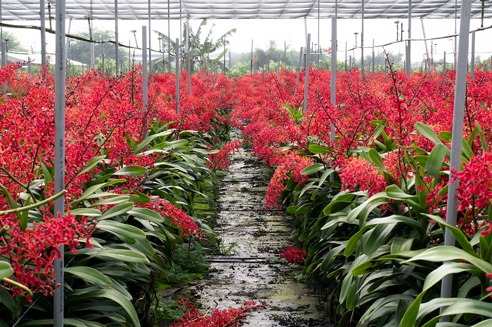 常見的腎藥蘭多為紅色,且花枝上小花眾多,開花時非常美麗,常作為喜慶場合花材使用。 腎藥蘭和蝴蝶蘭雖然都是蘭花,但屬於熱帶地區的蘭花,台灣在高屏地區的氣候條件相當適合栽培, 除了供應國內切花市場,亦有外銷到日本、新加坡、香港等地,主要是其花數多、花朵深紅,瓶插壽命長的特性,相當符合 華人地區消費市場的喜愛。